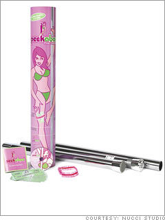 – From a product listing by $75 billion British retailer Tesco, plugging the $100 Peekaboo Pole Dancing Kit – which includes an 8.5-foot chrome pole, a “sexy dance garter,” and play money for stuffing into said garter – in the Toys & Games section of its website.