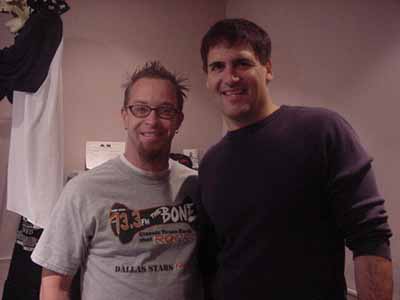 Bo Roberts (left) nuzzles with Mavs owner, Mark Cuban at his previous radio gig.
