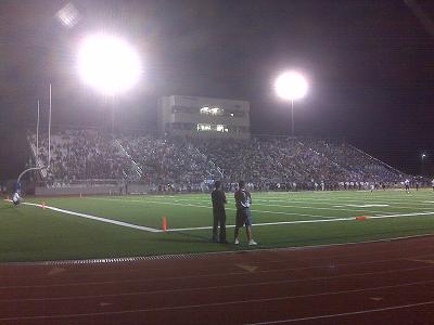 Hit the road for an away game this week. Wildcat action moved west to the friendly (not so much) confines of Hebron’s Rink E. Dink Memorial Football Stadium (sic), Grill & Car Park Emporium. I guess when your team plays in a 14,000+ seat stadium it’s mostly downhill from there, but when you see visiting fans turned away by the hundreds because the visiting side is sold out you gain an appreciation for the luxuries of home. Texasbob lists Rink E. Dink capacity at 9500. Two words. No effin’ way.