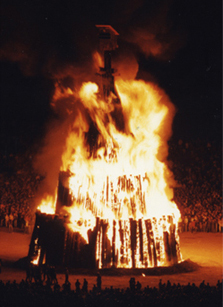 But among the hallmark of Aggie traditions is Bonfire. From humble beginnings this tradition grew. Bonfire was held each year preceding the Texas game and it is said that the Bonfire represents the Aggies’ “burning desire to beat the hell out of t.u.”