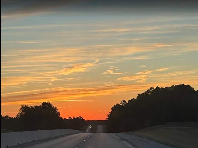 Is how I began most every morning text message to my special person. There is something about mornings that inspire hope and optimism. After all, the day has just begun, nothing has had a chance to go wrong yet. At least for now. So I choose to see where I am at today as the beginning of a new day. I took this photo from the road as I was leaving Texas, heading back home to North Carolina, just this past Sunday. It has been a struggle getting this far, but to myself I say, Good Morning Sunshine.